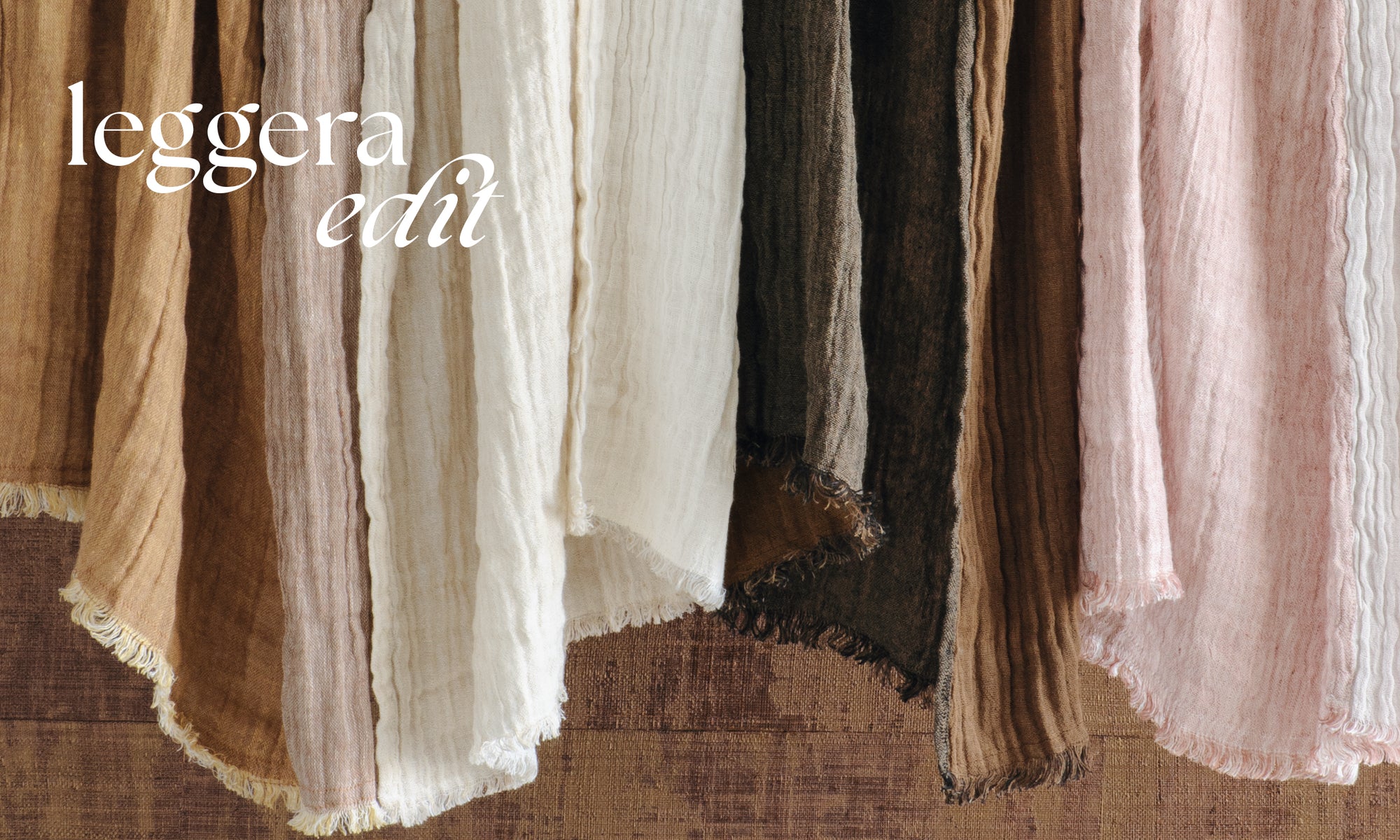 Our expanded range of Leggera throws, blankets, bath/beach towels, hand towels and washcloths are here to transform your interiors. These sumptuous new pieces are lovingly designed for embracing summer in your home with a relaxed, casual aesthetic.