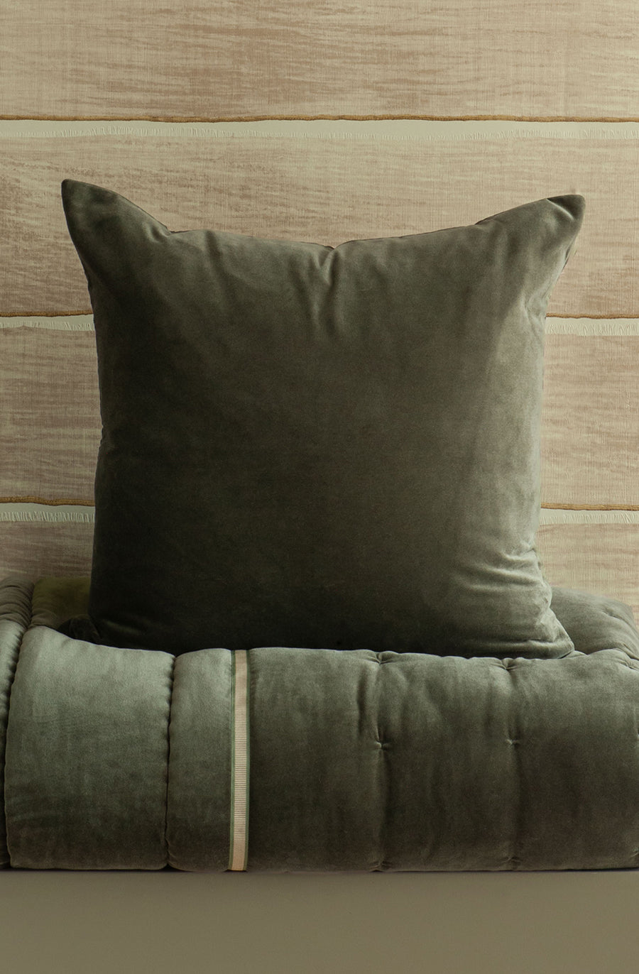 Luchesi olive bathes any bed setting in opulence with its moody colour. This 100% cotton velvet eurocase pair can stand alone in its soft texture, or provide the ideal backdrop for introducing print to your sofa or bed.